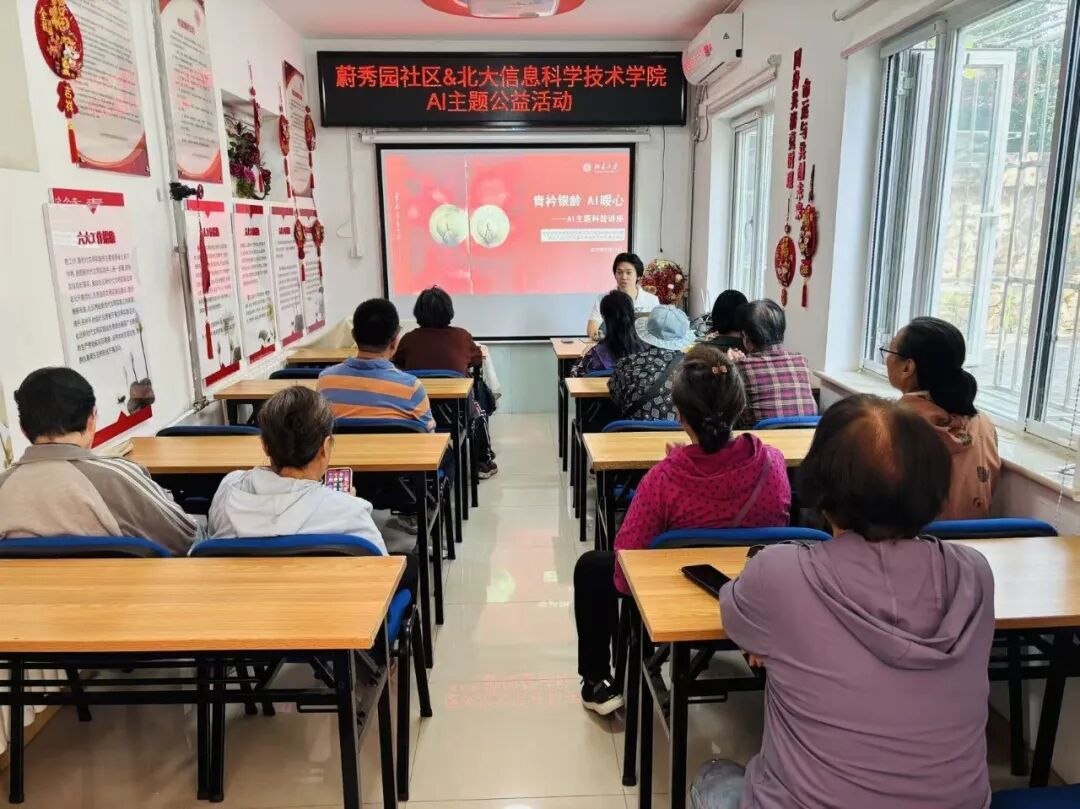 附属小学,通过面向社区老年人和青少年群体的AI科普活动,提升两类社会关爱人群对人工智能技术的认知与应用能力,助力跨越数字鸿沟,展现信科青年在科技普及与社会服务中的责任担当,在北大“科技创新年”建设中贡献来自学生群体的独特价值。