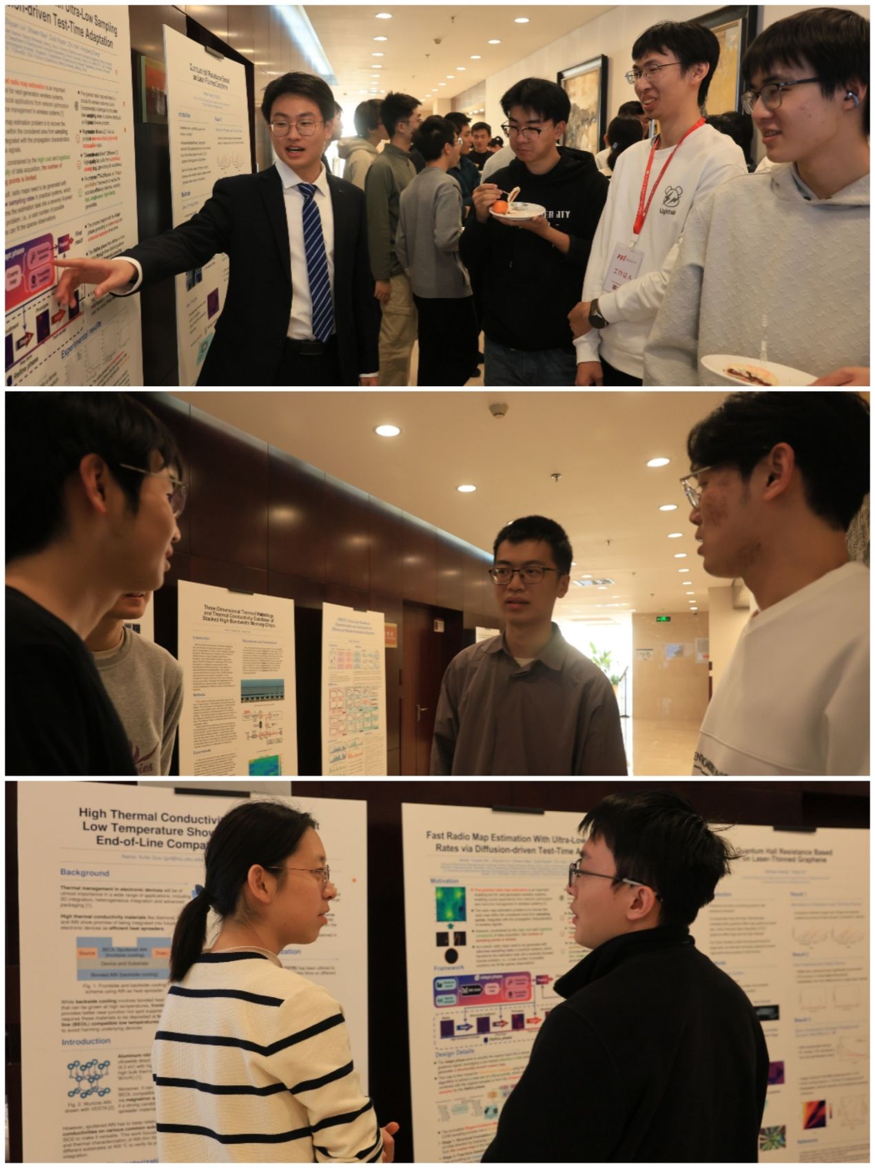 此外,论坛还特设海报交流展区,同学们汇聚在各式海报前,就研究内容、技术方法及创新点展开讨论切磋。