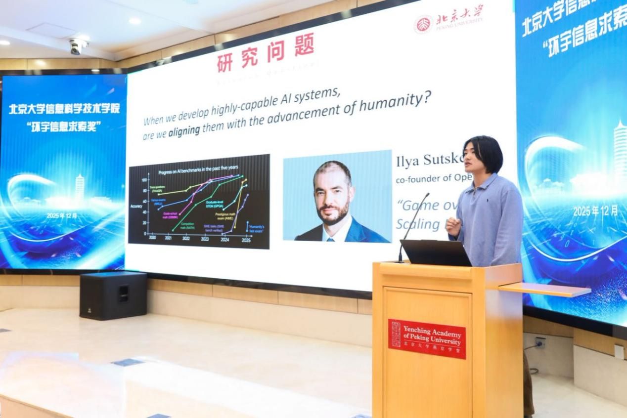 2022级智能科学与技术专业本科生张洋从AI如何与人类的价值观、发展的普及性、生产效率对齐三个角度分析大模型优化改进的潜在方向,体现了多元化的思考角度。他也积极参与学术界的对话,并提出了范式、评估、推理三个重要的未来研究方向。