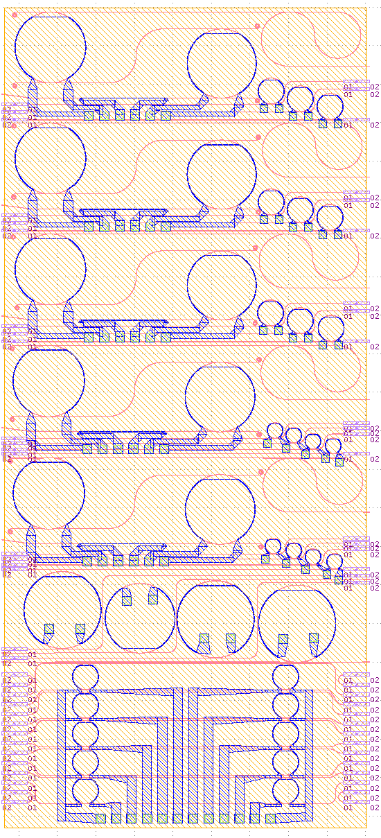 光芯片班的学生则聚焦于高性能光电子器件的前沿探索,挑战在非传统波段与新型材料平台上完成激光器、调制器等关键光电子器件的仿真设计。其中,第一组在低损耗氮化硅平台上设计了外腔激光器,小组成员通过精细设计微环谐振腔参数和波导耦合系数,致力于实现窄线宽的激光输出;第二组则瞄准了数据中心光互连的应用场景,在具有优异压电效应的光子集成平台上,设计了低驱动电压、大带宽的电光调制器。同学们通过优化电极结构设计以实现更好的阻抗匹配与光电相互作用,力求在降低功耗的同时突破带宽限制,为高速光模块发射机提供一种新材料平台的解决方案。同学们紧跟光子学领域前沿,在新型材料平台与器件结构上大胆创新,完成了从原理仿真到版图绘制的完整流程。