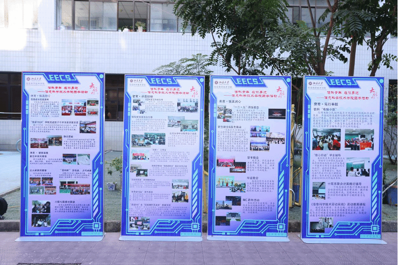 活动现场还设立了信科团学活动风采展示,用图文并茂的展板介绍了信科团学各项品牌活动,不仅帮助信科学子快速了解学院第二课堂相关情况,也向校内外参与者充分展示本科生学院德智体美劳全方位育人成果。