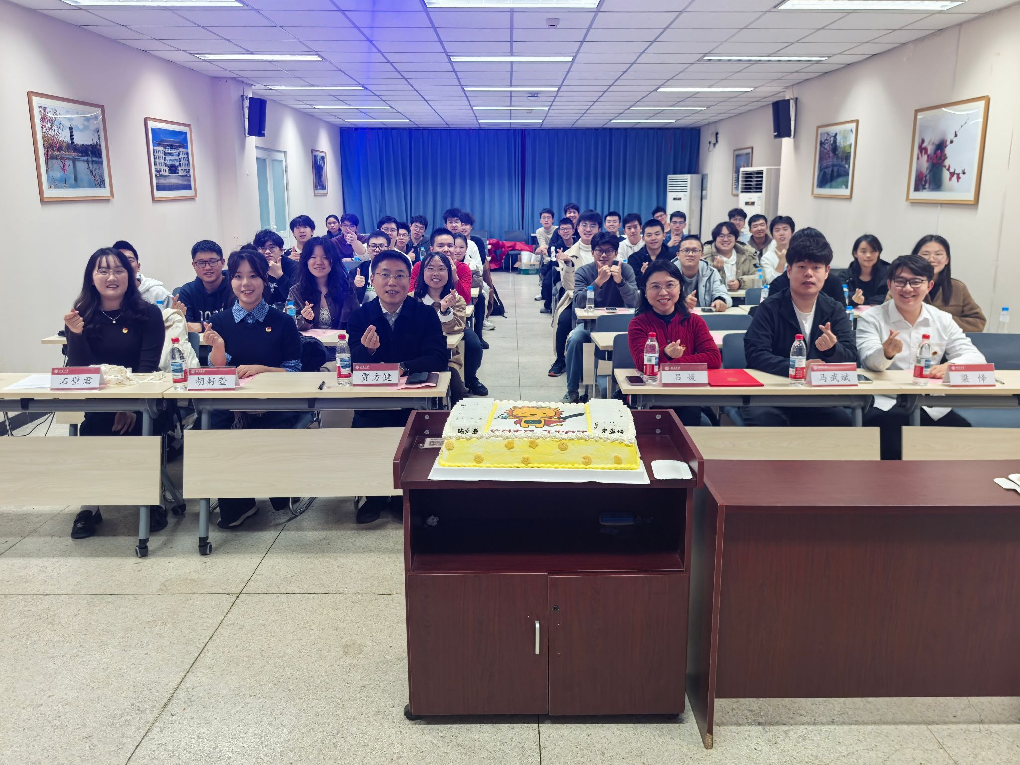 会后,与会领导、老师与新老两届团学骨干合影留念。学院还特别准备了印有每位骨干姓名及信科“攻城狮”形象、“信科青年,在你身边”标志的定制蛋糕。这既为过去一年辛勤画上的甜美句点,也为新一年奋斗注入的第一份能量,充分体现了信科团学大家庭的温暖、团结与活力。